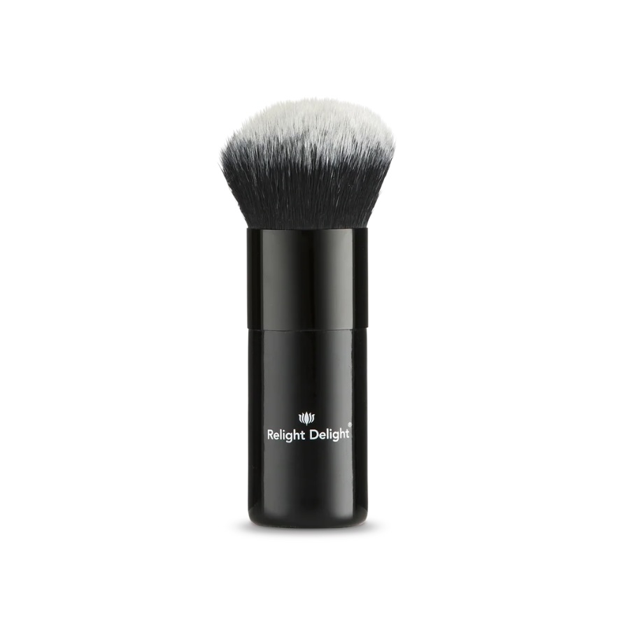 Ein ultrasofter Alleskönner Pinsel mit langem Stiel, der unverzichtbar für ein perfektes Ergebnis beim Auftragen des Mineralpuders von Relight Delight ist und für ein gleichmäßiges natürliches Aussehen der Haut sorgt. Die hochwertigen Synthetikhaare haben sehr weiche Spitzen und sind dicht gebunden- so ist der Pinsel nicht nur wunderbar flauschig, sondern er kann auch mehr Puder aufnehmen, wodurch eine bessere Abdeckung auf Gesicht, Hals und Dekolleté möglich ist.